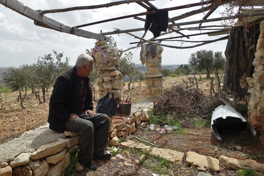 An einem warmen Frühlingstag im März besuchte ich mit einem Teamkollegen das Dorf Shoshahla, südlich von Bethlehem. Bis auf eine wurden alle Zufahrtsstraßen vom israelischen Militär gesperrt. Doch auch diese wurde gegen Ende zu steil und unwegsam, um mit dem Auto weiterzukommen. Vorbei an Weinreben und Olivenbäumen, die auf Terrassen gepflanzt waren, mussten wir zu Fuß die letzten Meter zurücklegen, bis uns Monder aus der Ferne bereits zu seinem Haus winkte. Jeden Samstag kommt er nach Shoshahla, um sein Land zu bewirtschaften. Um die 200 Menschen besitzen dort noch landwirtschaftlichen Grund, aber nur wenige leben in Shoshahla, wie z. B. Monders Stiefeltern.